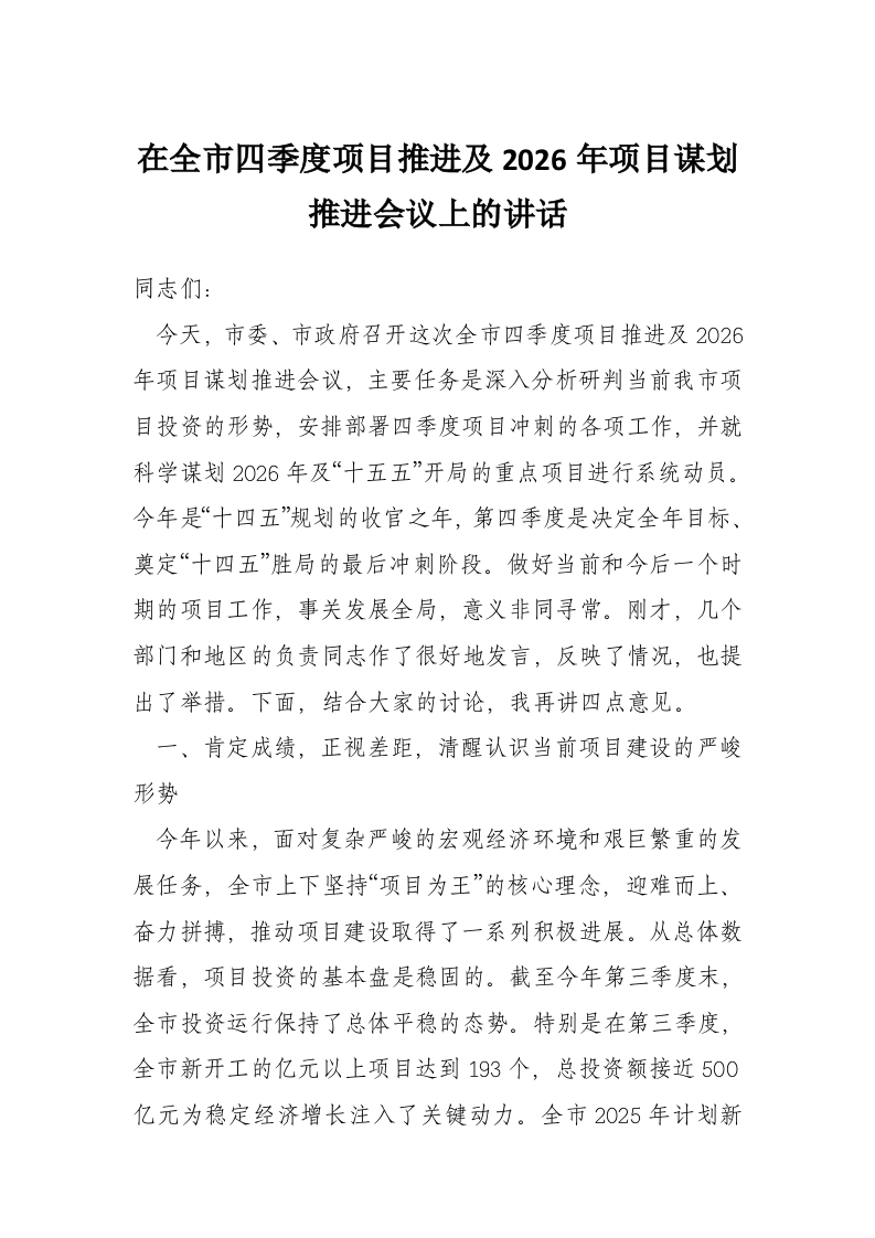 在全市四季度项目推进及2026年项目谋划推进会议上的讲话