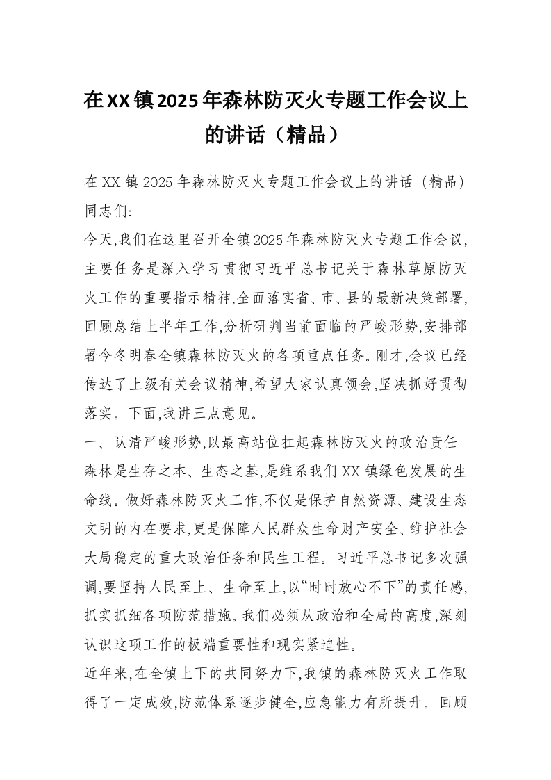 在XX镇2025年森林防灭火专题工作会议上的讲话(精品)