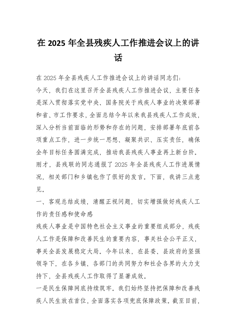 首页写作素材在2025年全县残疾人工作推进会议上的讲话