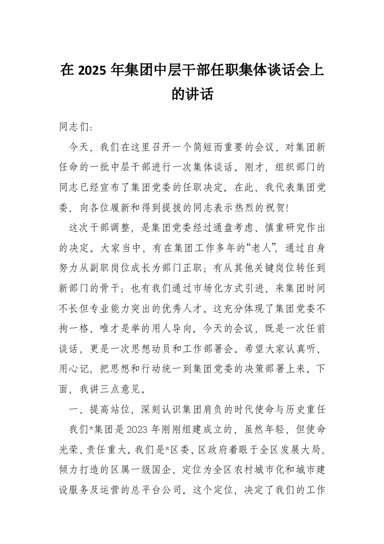 首页写作素材在2025年集团中层干部任职集体谈话会上的讲话