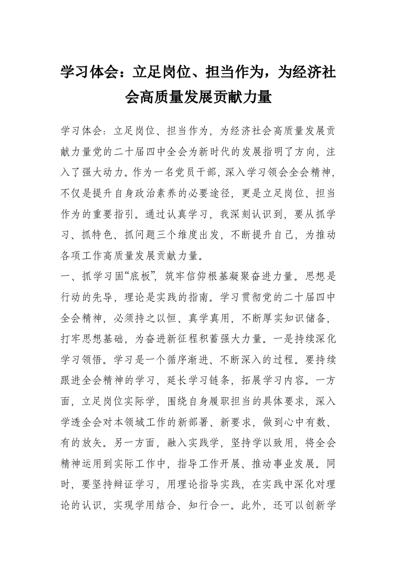 学习体会:立足岗位、担当作为,为经济社会高质量发展贡献力量