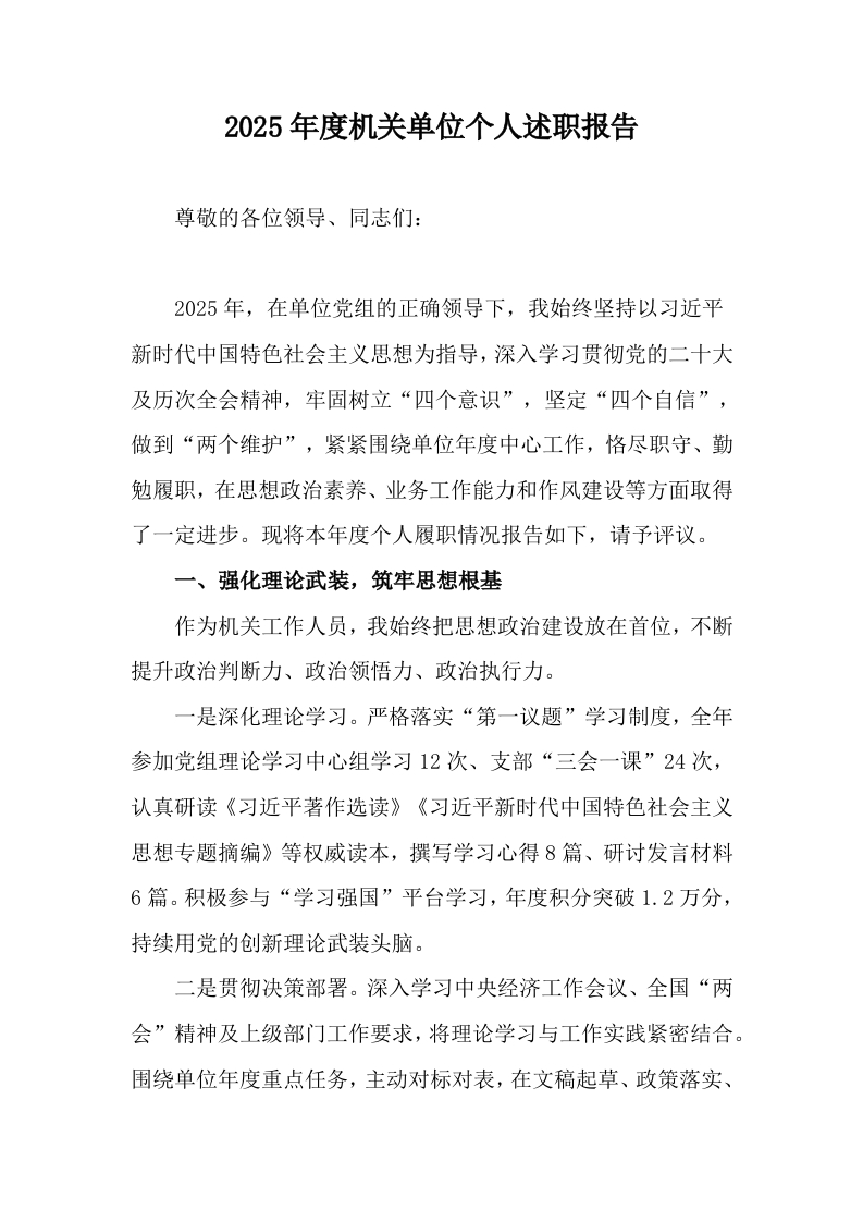 2025年度机关单位个人述职报告