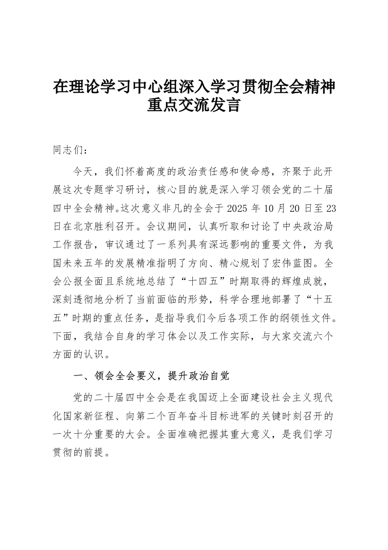 在理论学习中心组深入学习贯彻***精神重点交流发言