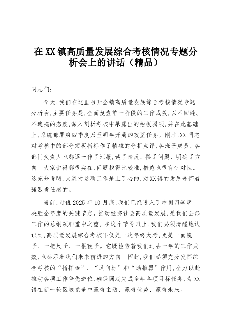 在XX镇高质量发展综合考核情况专题分析会上的讲话(精品)
