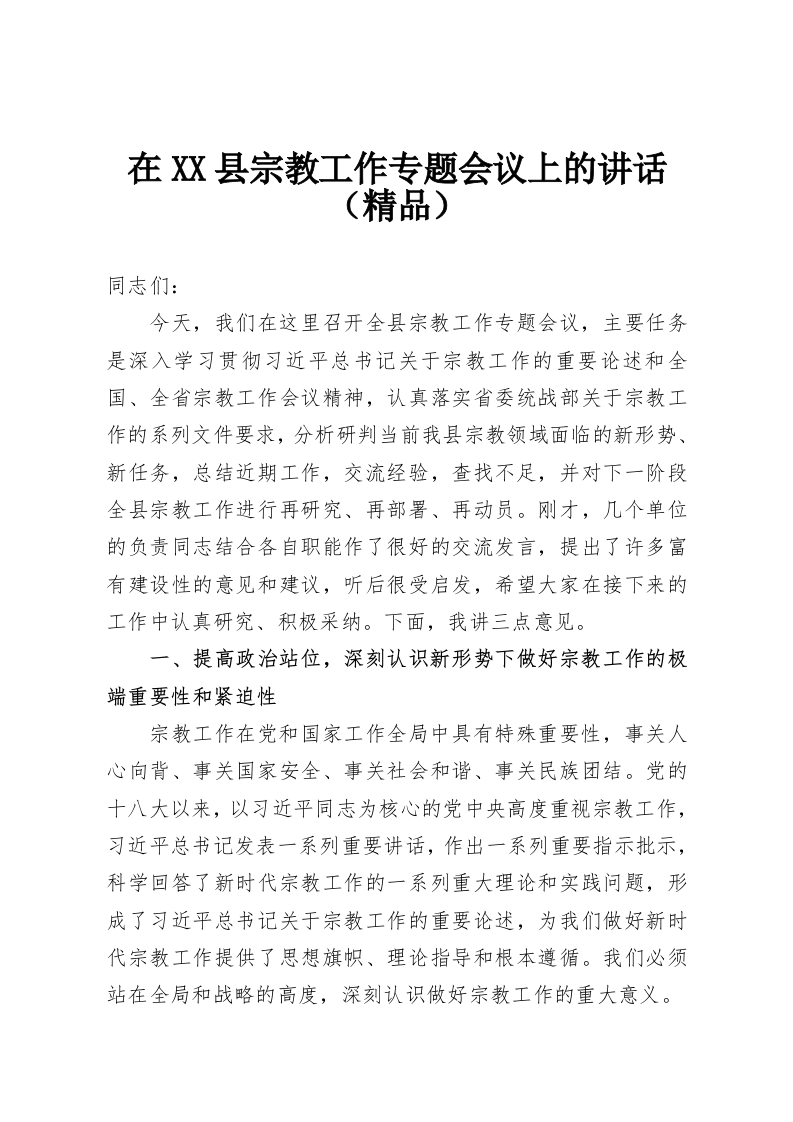 首页精选范文在XX县宗教工作专题会议上的讲话(精品)