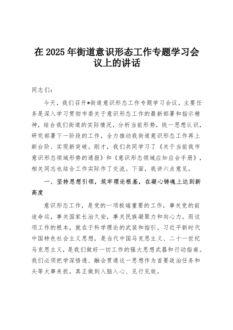 首页精选范文在2025年街道意识形态工作专题学习会议上的讲话