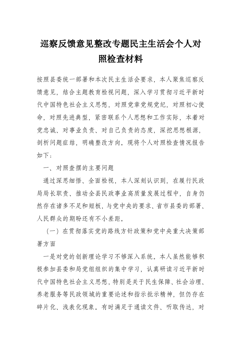 巡察反馈意见整改专题民主生活会个人对照检查材料