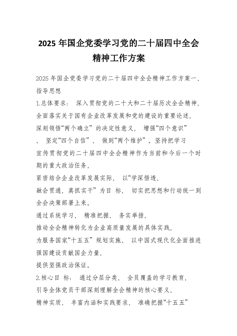 首页材料汇编2025年国企党委学习党的二十届四中***精神工作方案