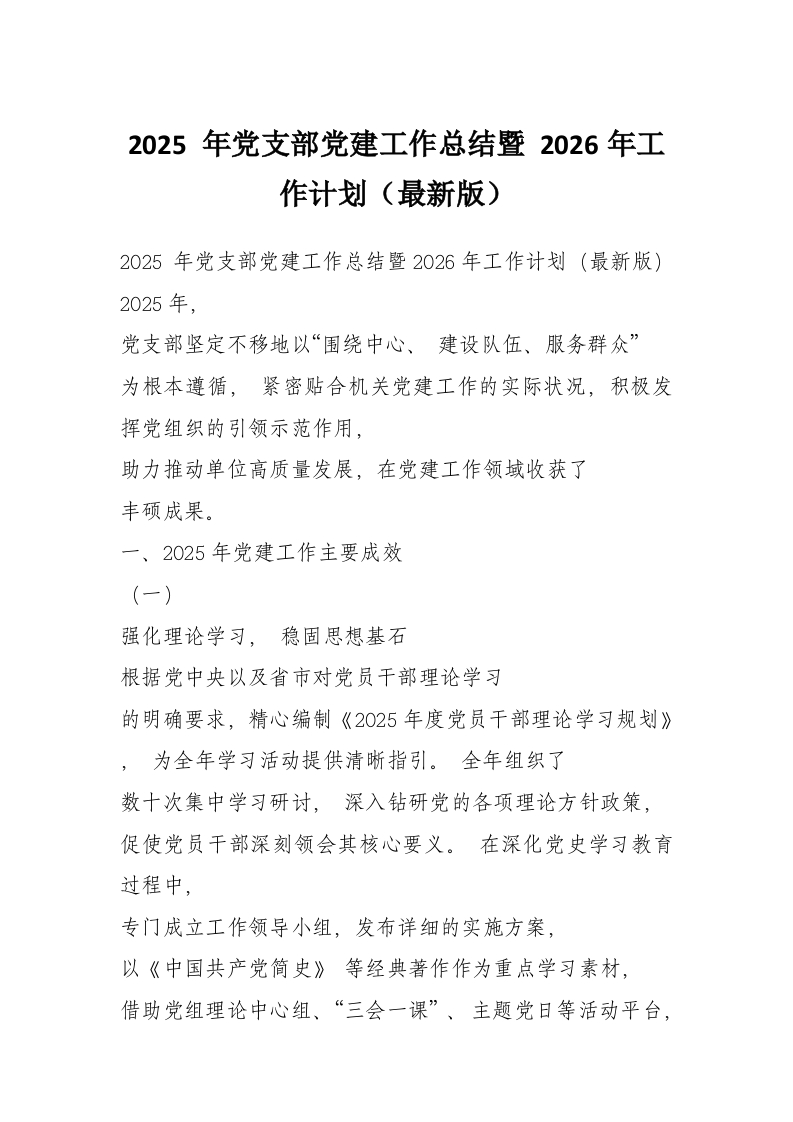 首页材料汇编2025 年党支部党建工作总结暨 2026年工作计划(最新版)