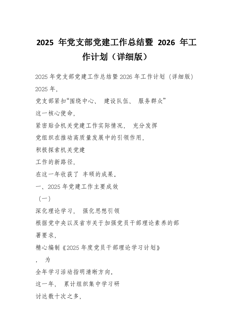 首页材料汇编2025 年党支部党建工作总结暨 2026 年工作计划(详细版)