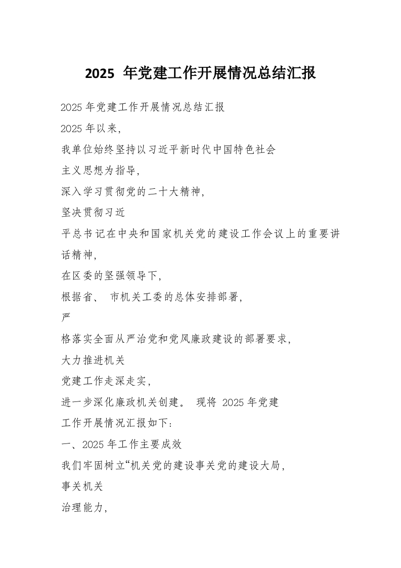 2025 年党建工作开展情况总结汇报