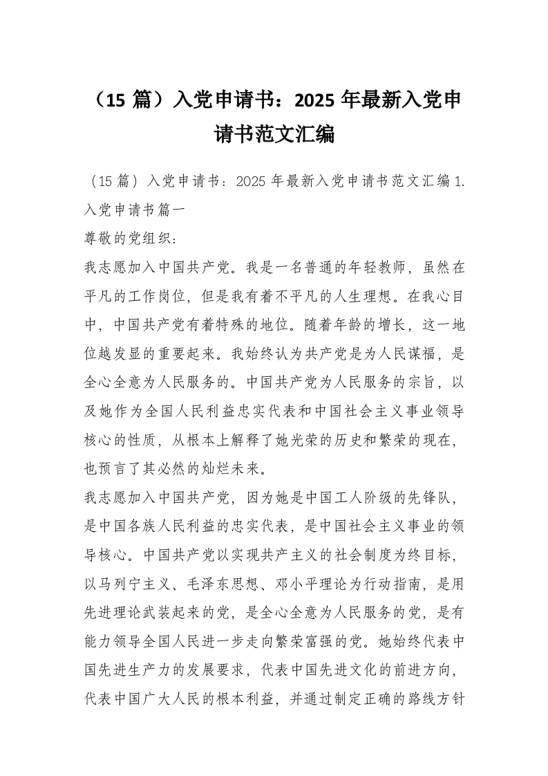 (15篇)入党申请书:2025年最新入党申请书范文汇编
