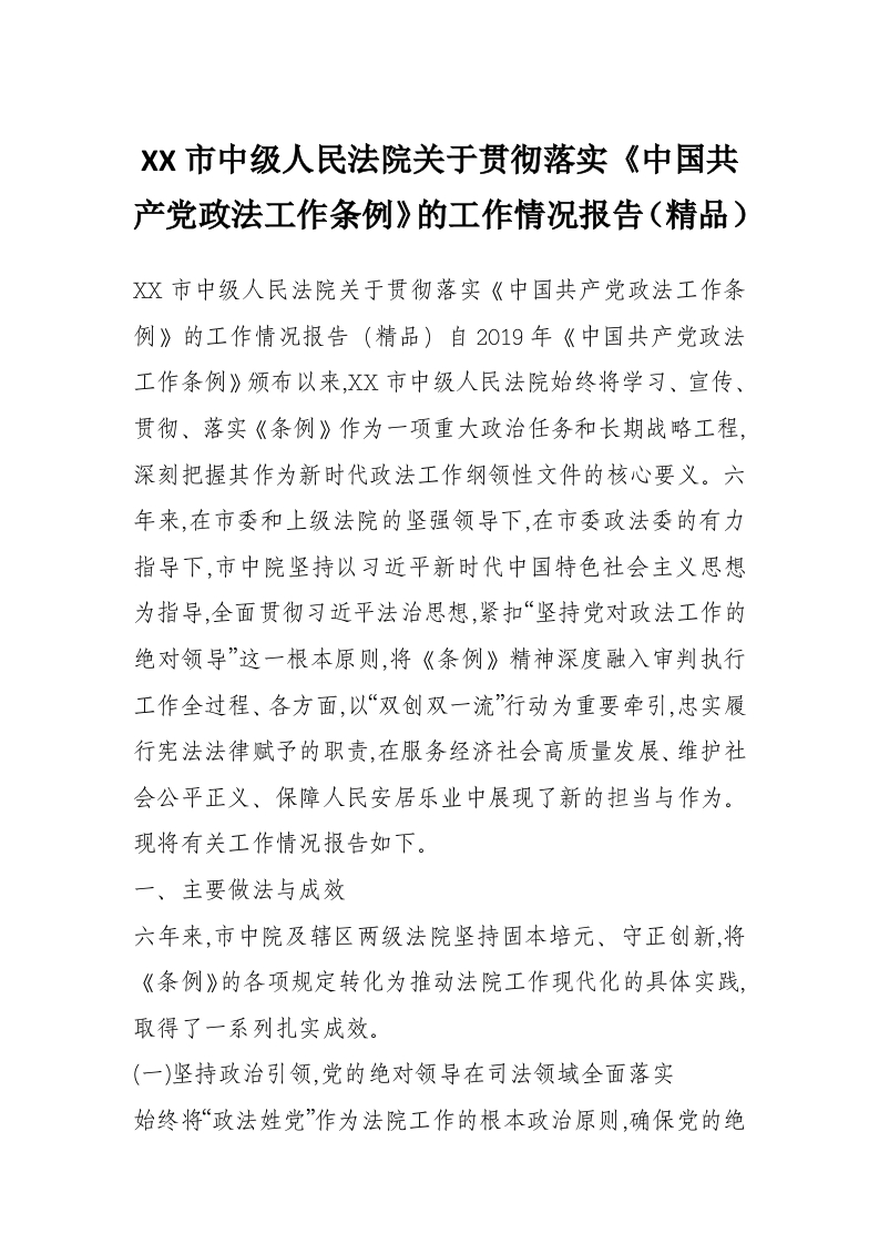 XX市中级人民法院关于贯彻落实《中国***政法工作条例》的工作情况报告(精品)