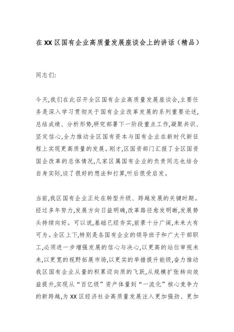 首页精选范文在XX区国有企业高质量发展座谈会上的讲话(精品)_副本