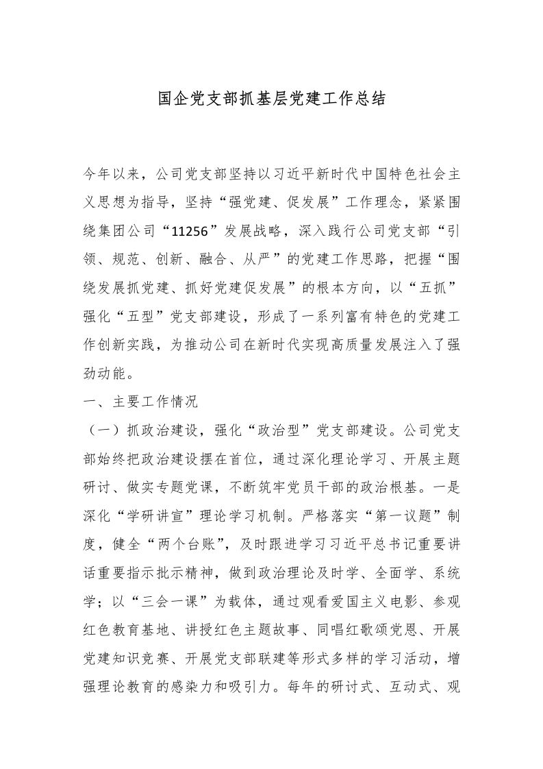 国企党支部抓基层党建工作总结_副本