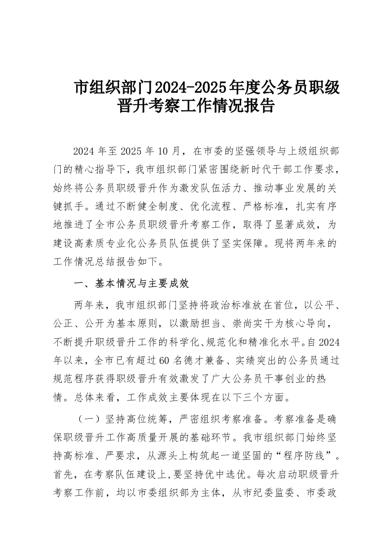 首页工作文档市组织部门2024-2025年度公务员职级晋升考察工作情况报告