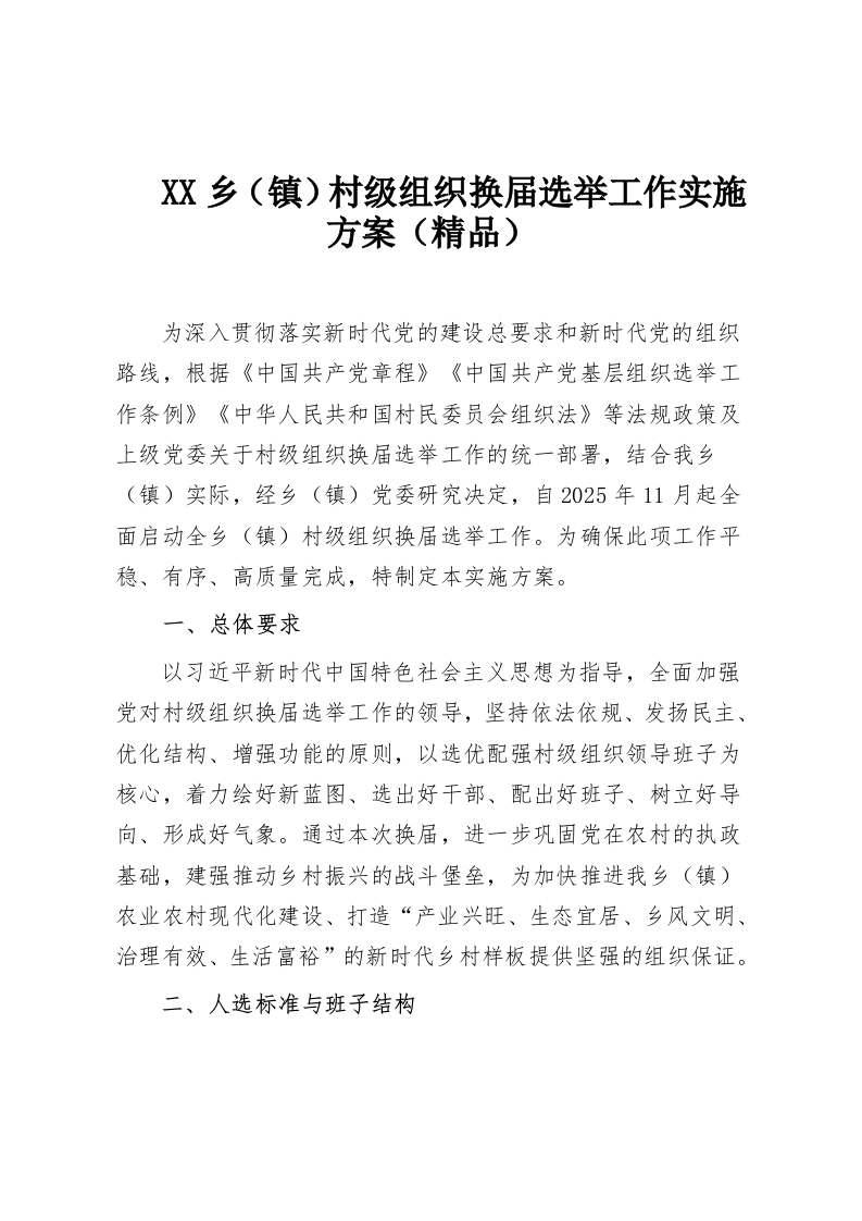 首页工作文档XX乡(镇)村级组织换届选举工作实施方案(精品)