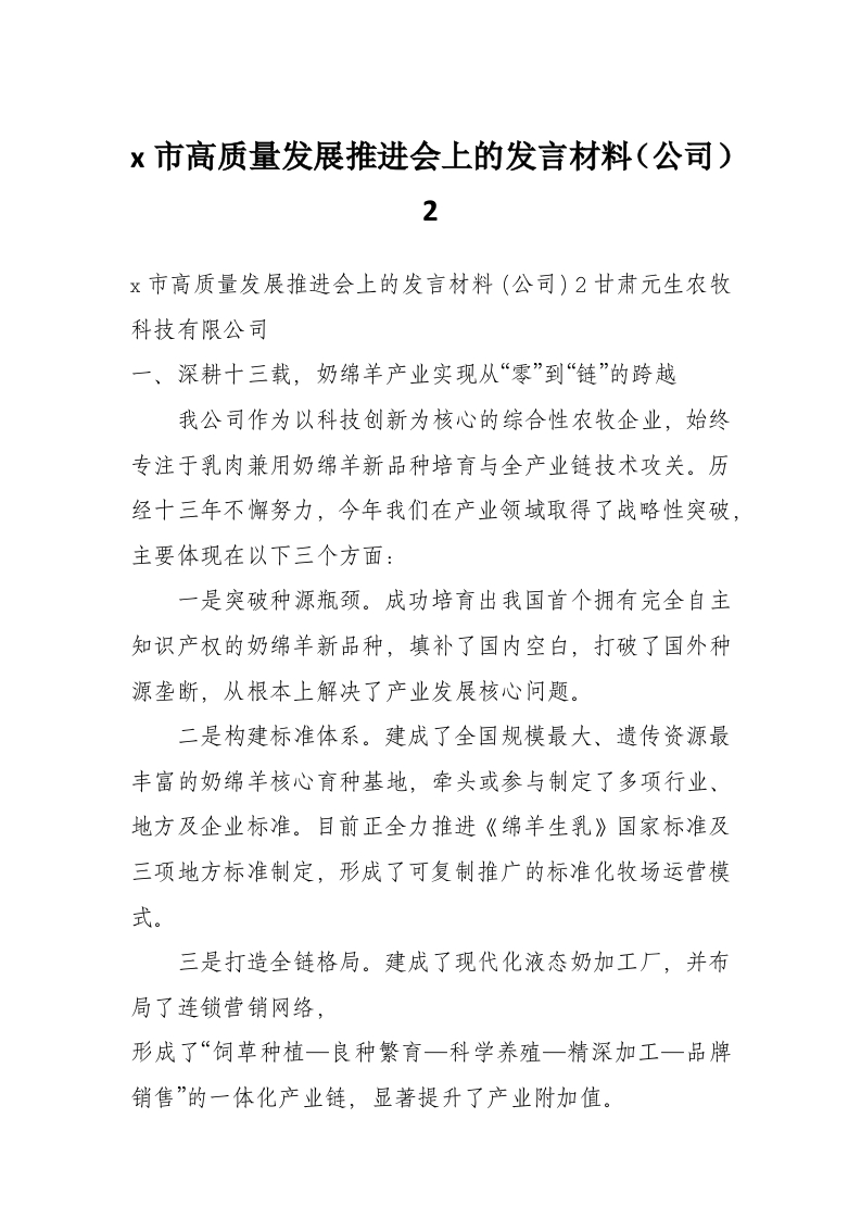 x市高质量发展推进会上的发言材料(公司)2