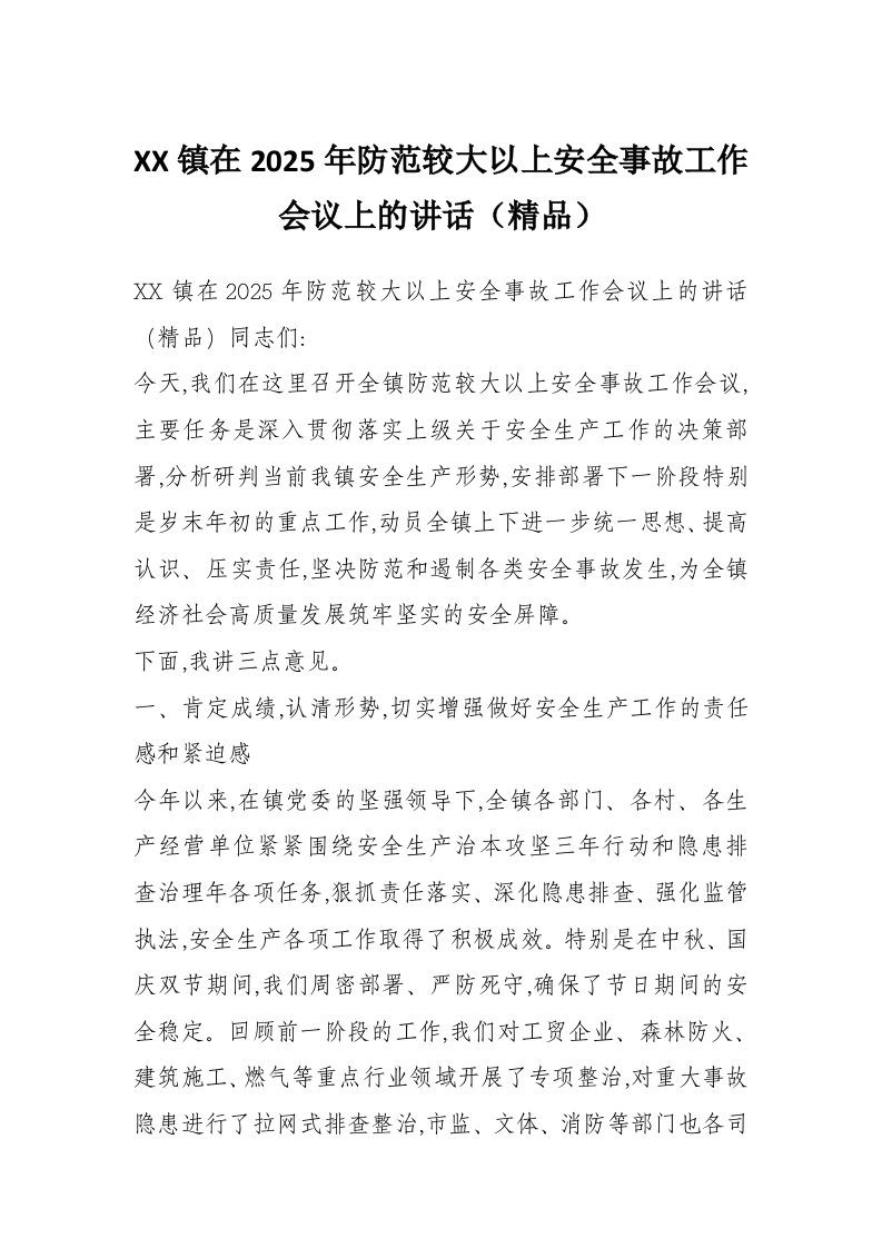 XX镇在2025年防范较大以上安全事故工作会议上的讲话(精品)