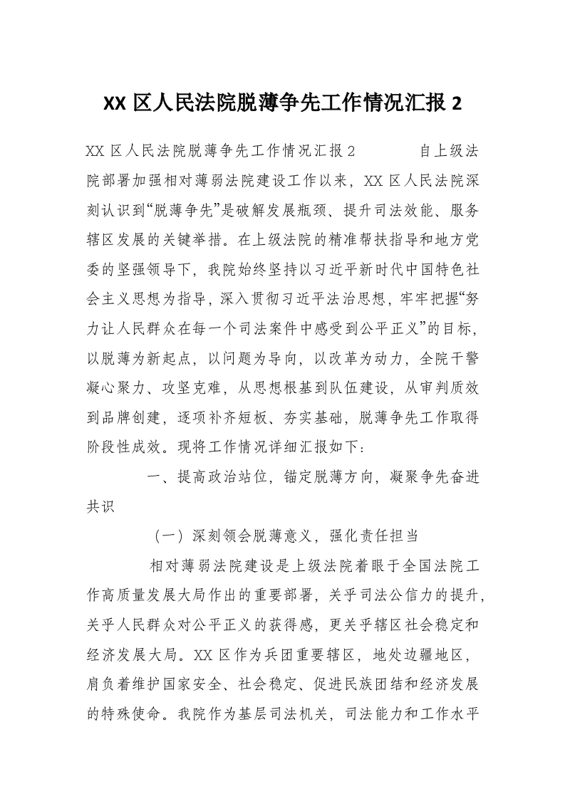 首页写作素材XX区人民法院脱薄争先工作情况汇报2