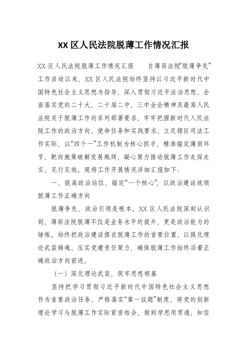 首页写作素材XX区人民法院脱薄工作情况汇报