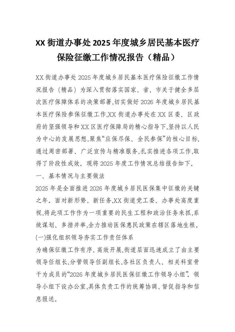 XX街道办事处2025年度城乡居民基本医疗保险征缴工作情况报告(精品)