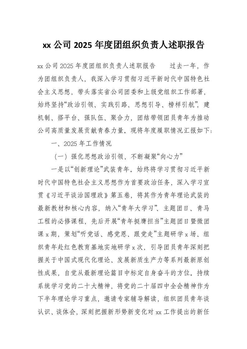 xx公司2025年度团组织负责人述职报告