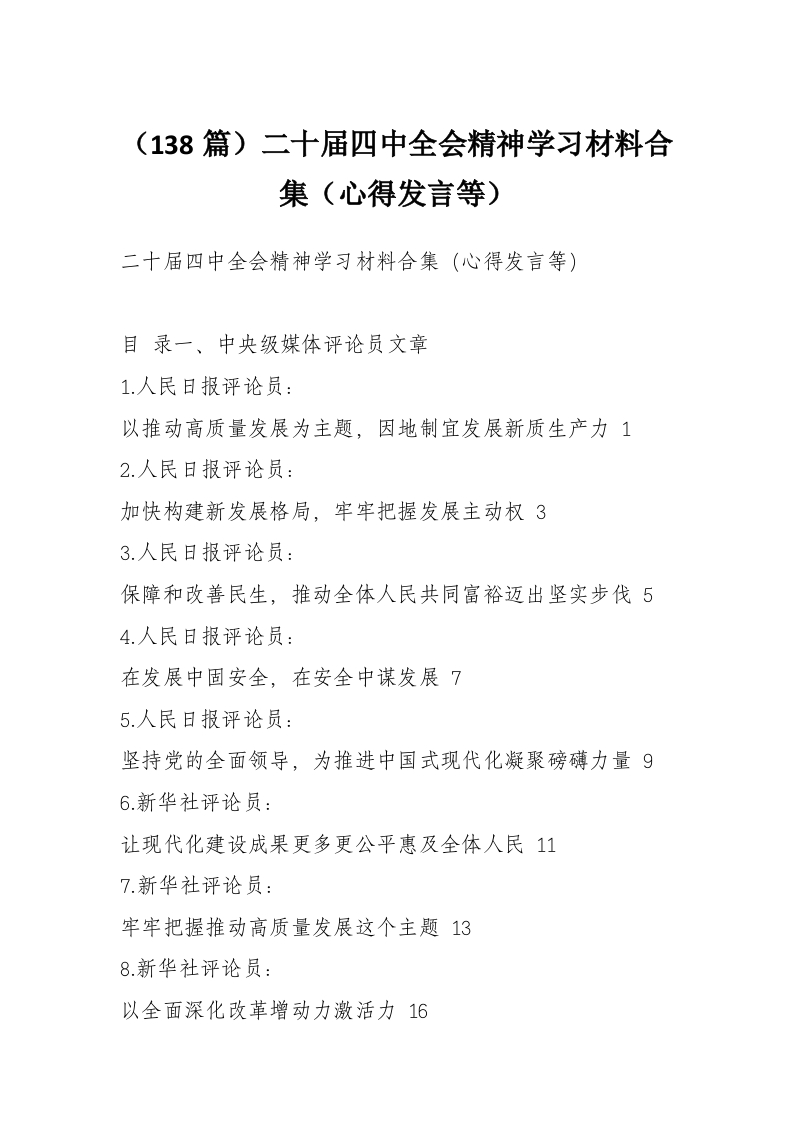 (138篇)二十届四中***精神学习材料合集(心得发言等)