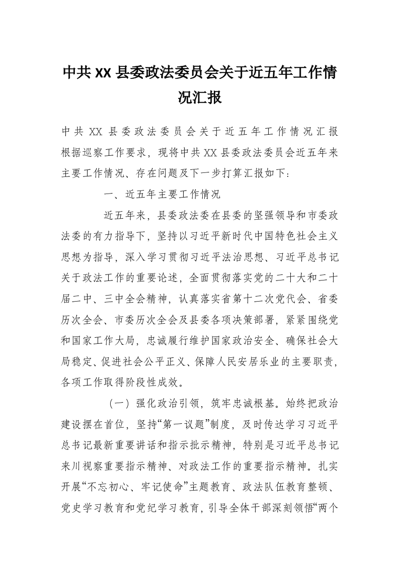 首页工作文档中共XX县委政法委员会关于近五年工作情况汇报