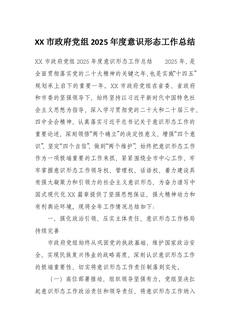 首页学习提升XX市***党组2025年度意识形态工作总结