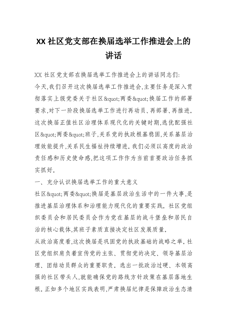 首页学习提升XX社区党支部在换届选举工作推进会上的讲话