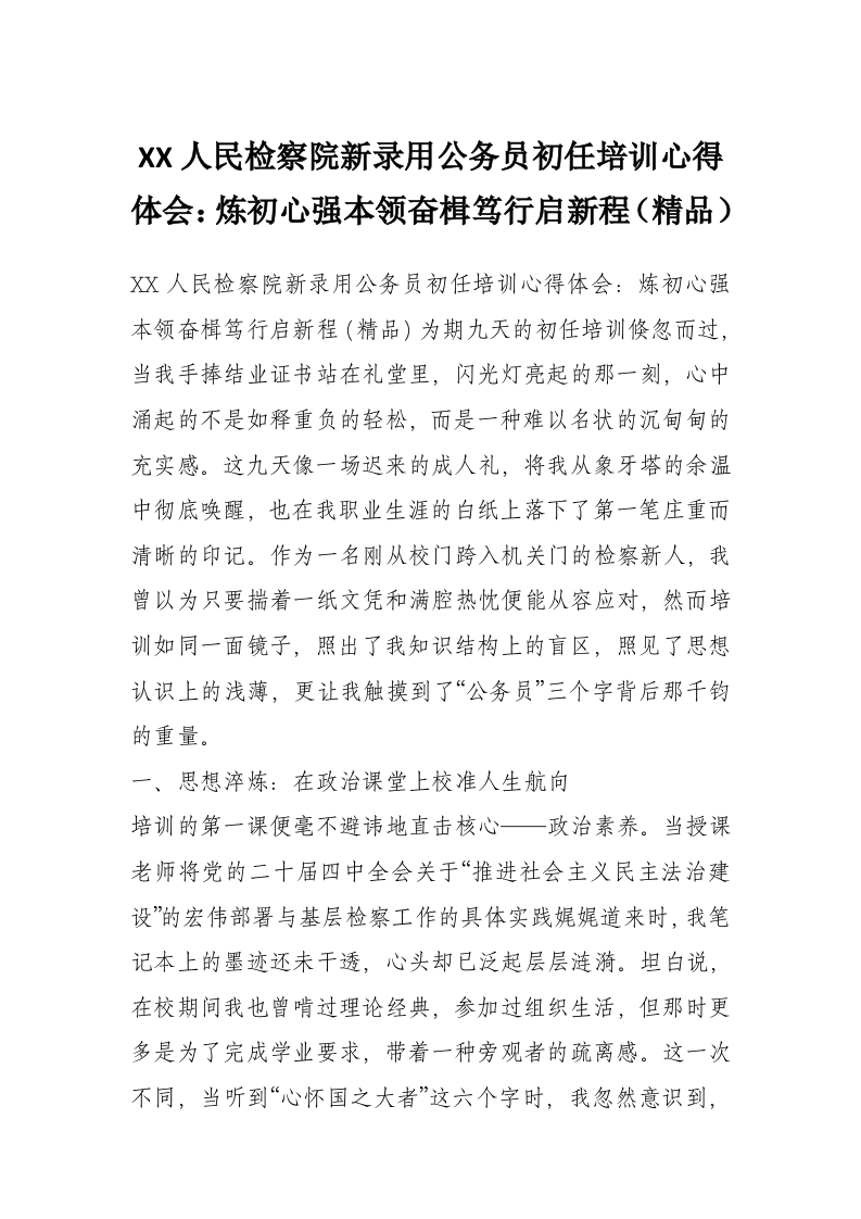 XX人民检察院新录用公务员初任培训心得体会:炼初心强本领奋楫笃行启新程(精品)