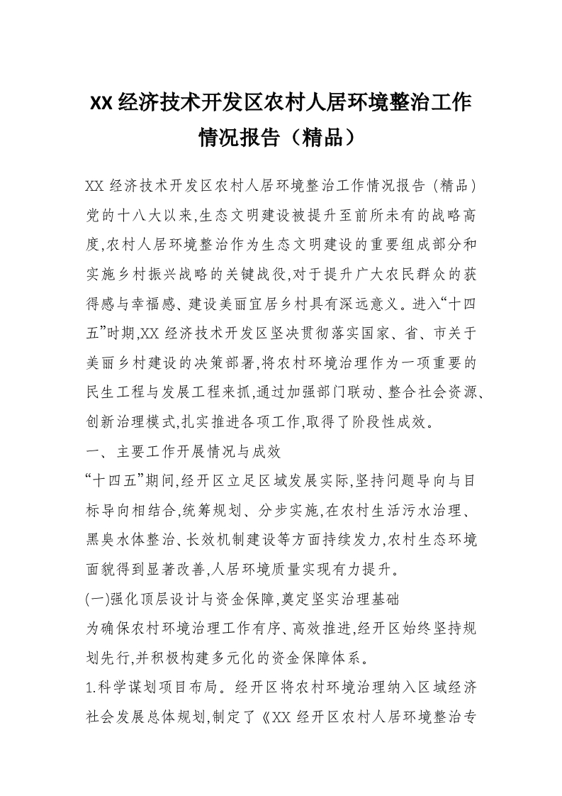 XX经济技术开发区农村人居环境整治工作情况报告(精品)