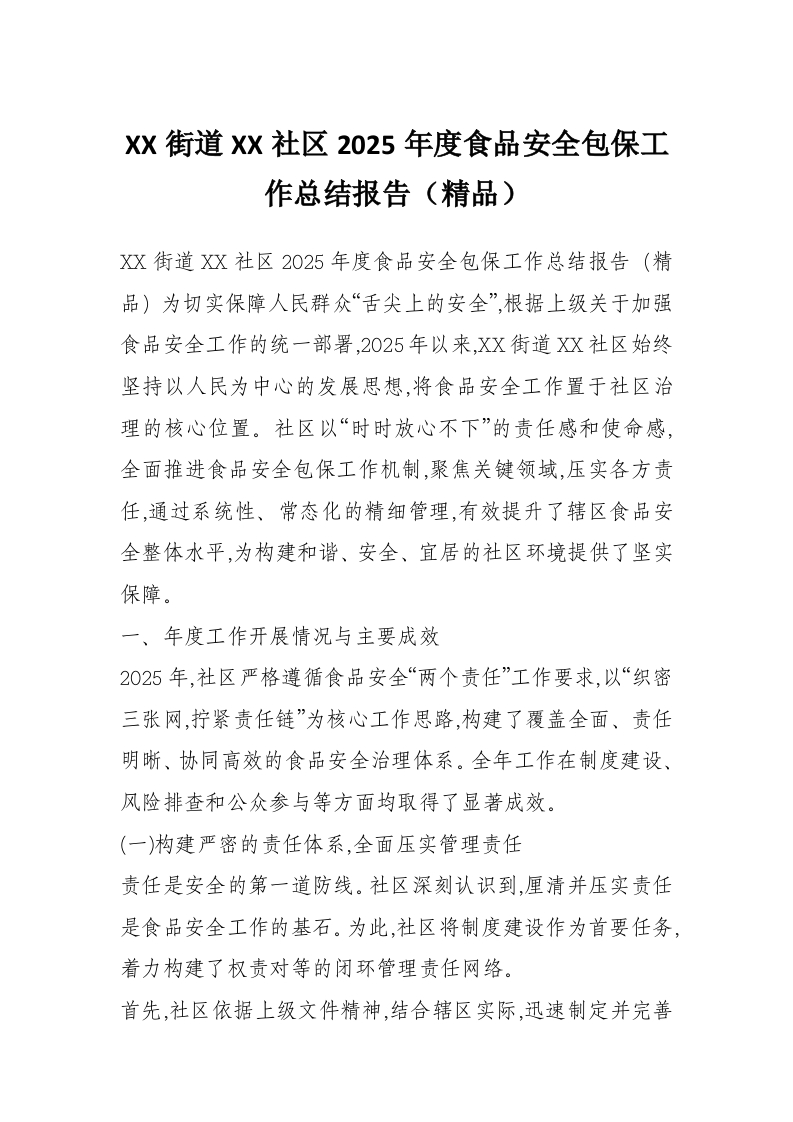 XX街道XX社区2025年度食品安全包保工作总结报告(精品)