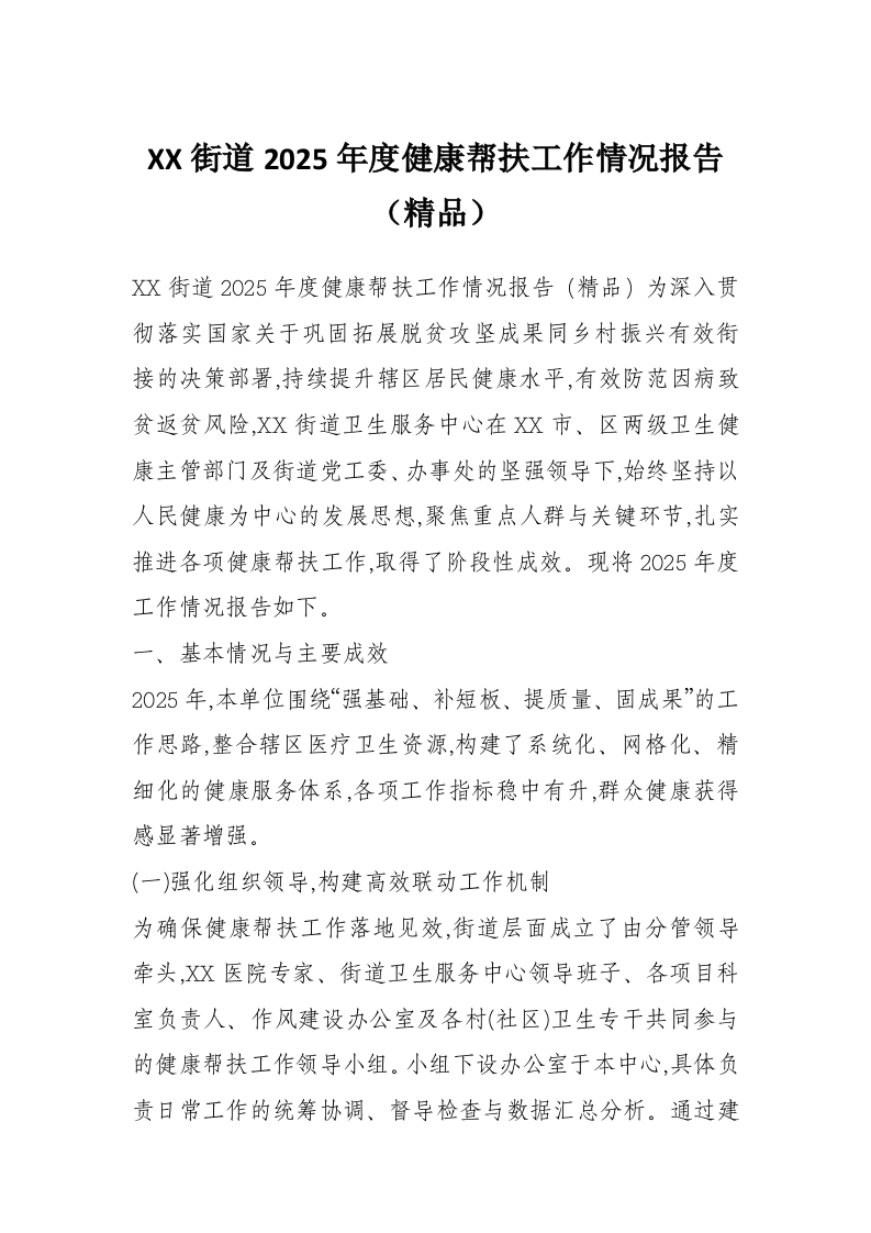 XX街道2025年度健康帮扶工作情况报告(精品)