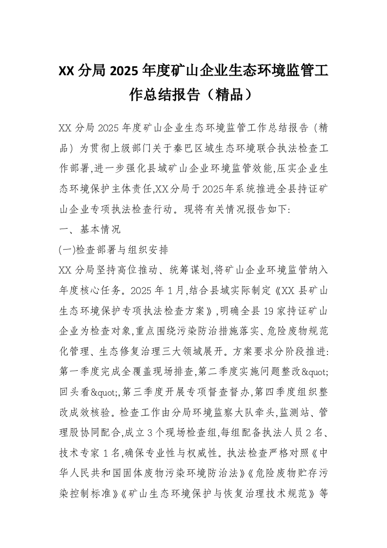 XX分局2025年度矿山企业生态环境监管工作总结报告(精品)