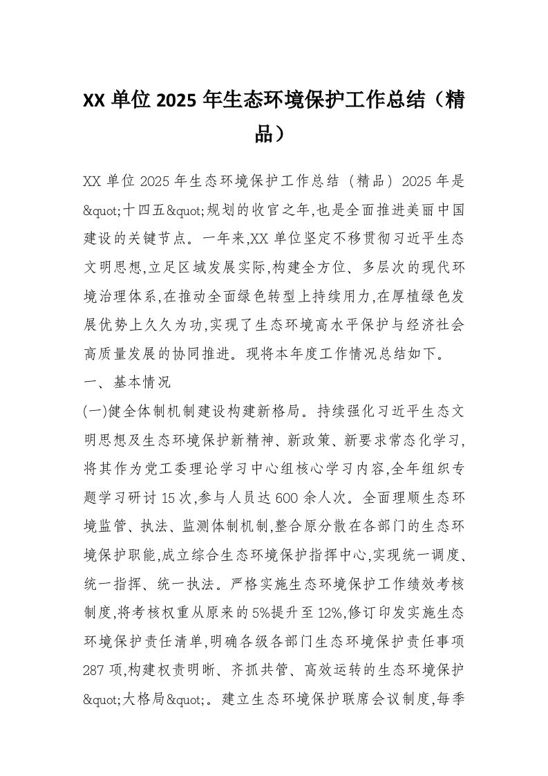 首页学习提升XX单位2025年生态环境保护工作总结(精品)