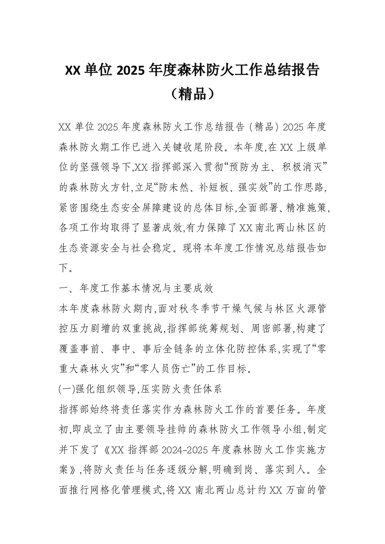 XX单位2025年度森林防火工作总结报告(精品)