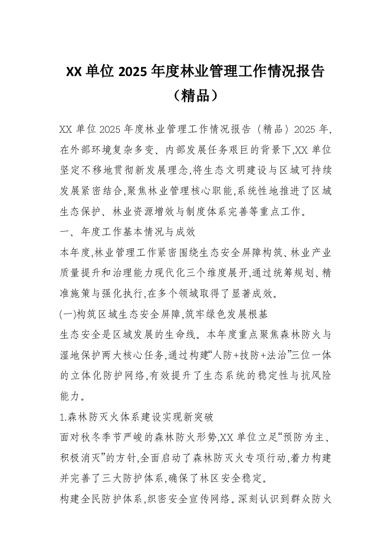 XX单位2025年度林业管理工作情况报告(精品)