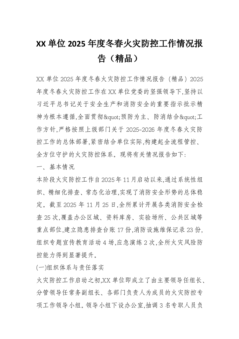 XX单位2025年度冬春火灾防控工作情况报告(精品)