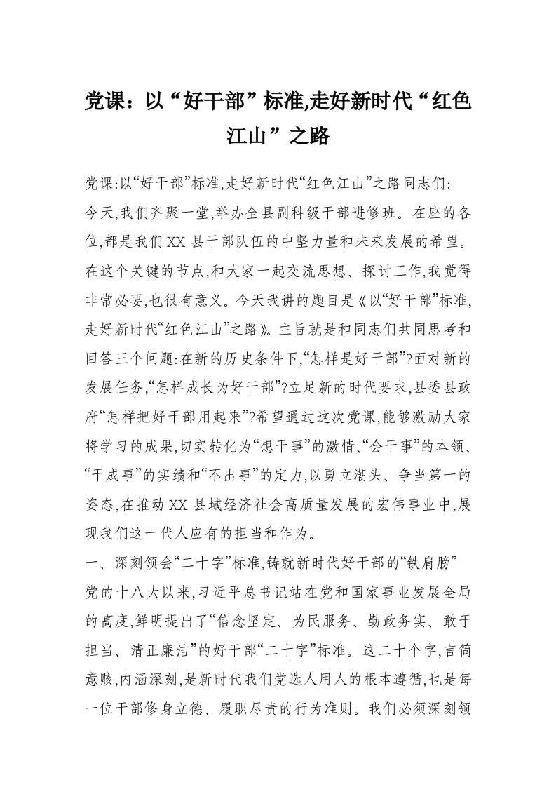 首页工作文档党课:以“好干部”标准,走好新时代“红色江山”之路
