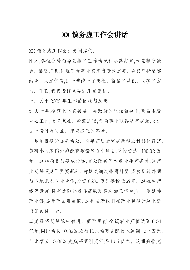 XX镇务虚工作会讲话