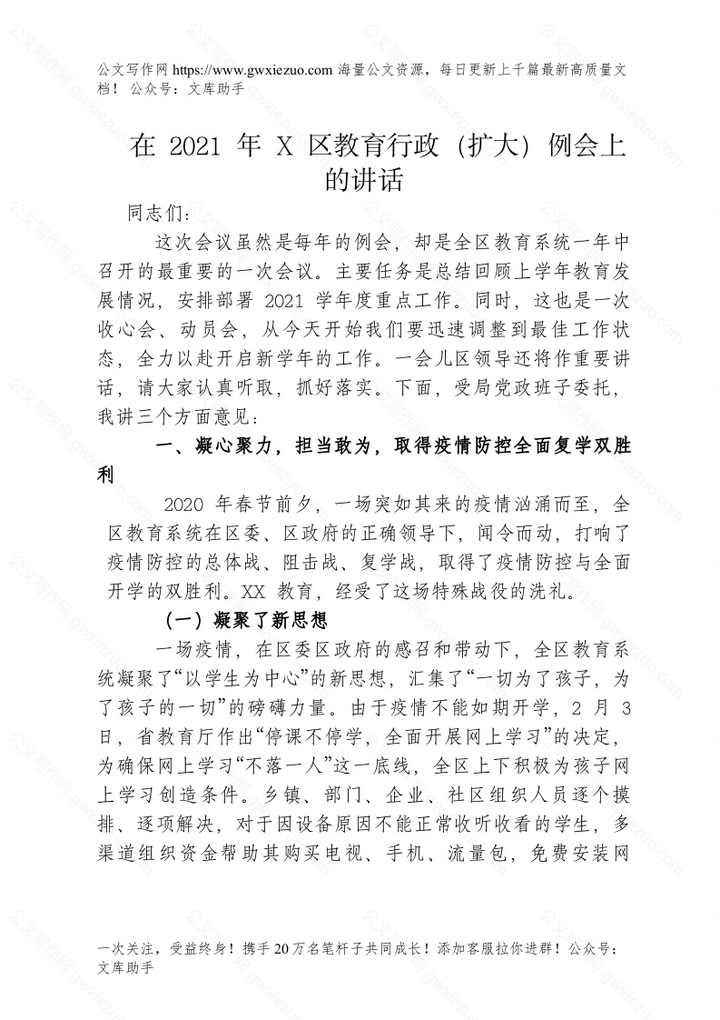 首页材料汇编在2021年X区教育行政(扩大)例会上的讲话
