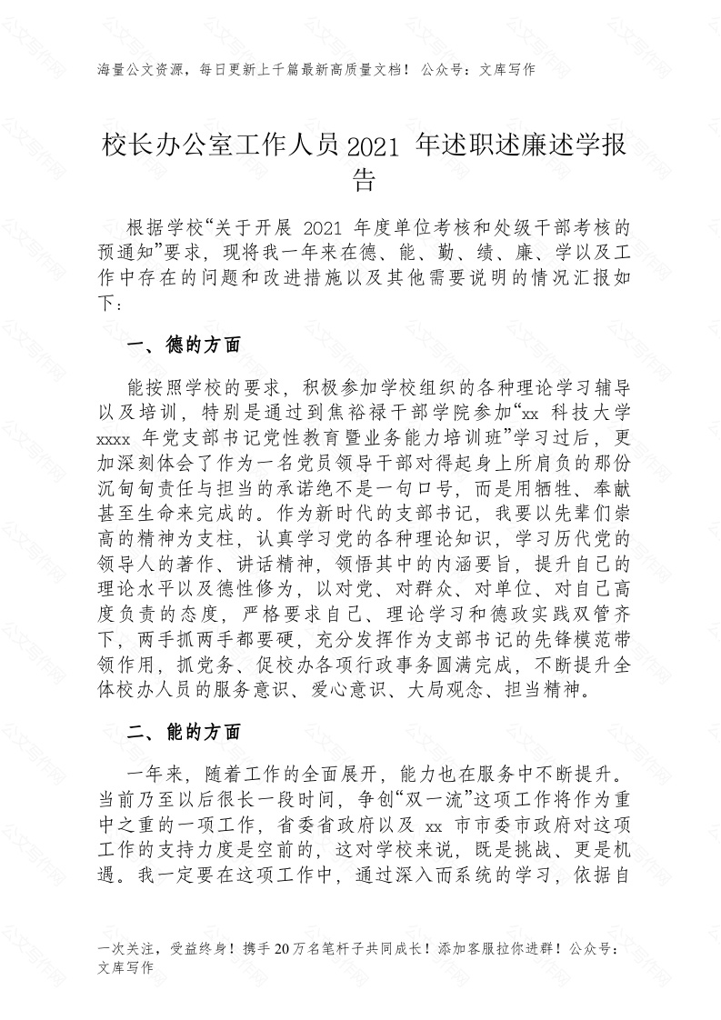 首页工作文档校长办公室工作人员2021年述职述廉述学报告
