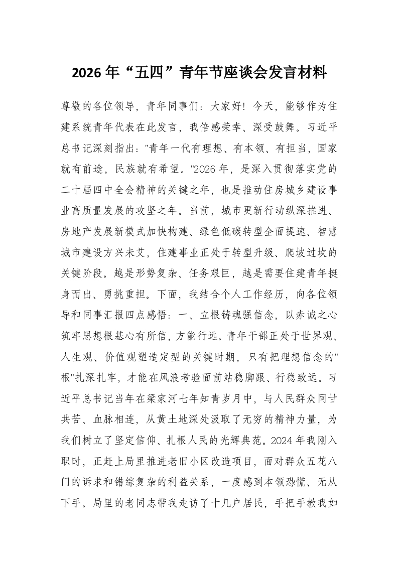 2026年“五四”青年节座谈会发言材料