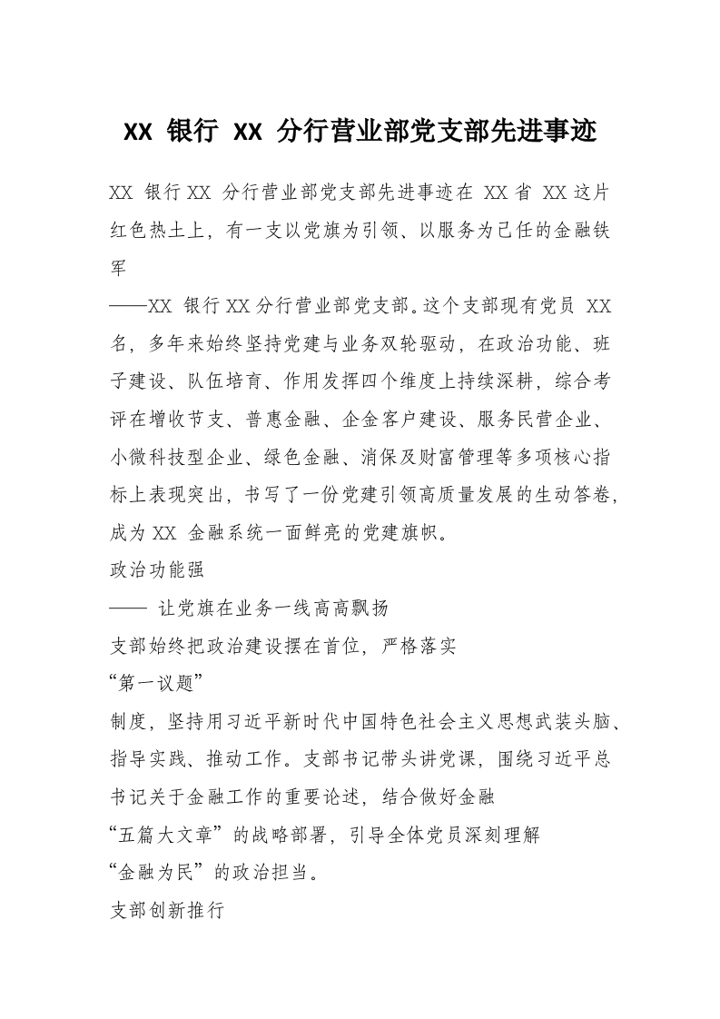 XX 银行 XX 分行营业部党支部先进事迹