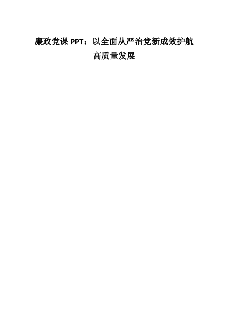 廉政党课PPT:以全面从严治党新成效护航高质量发展