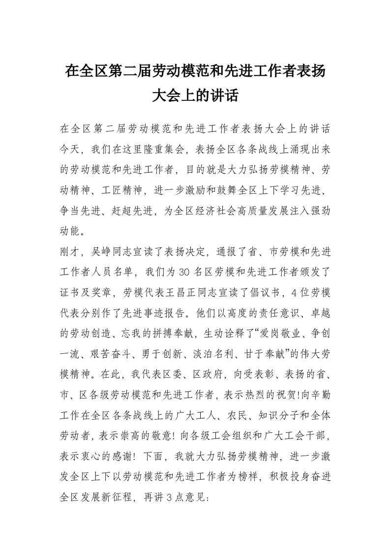 在全区第二届劳动模范和先进工作者表扬大会上的讲话