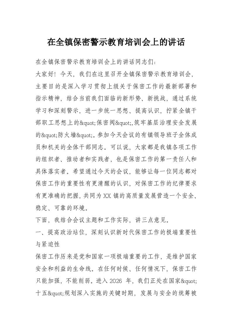 首页讲课讲稿在全镇保密警示教育培训会上的讲话
