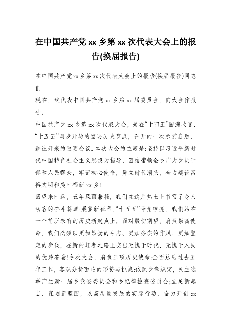 在中国***xx乡第xx次代表大会上的报告(换届报告)